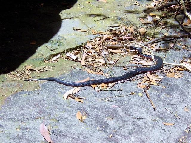 Black Heath | Do modrych hor jsem se vypravil celkem trikrat, pokazde to byla nadhera. Letos jsem napriklad vubec nebyl u Tri Sester. Pote co jsem videl BridailVeil falls a udoli kolem nej, tak je mi jasne, ze vetsina turistu to nejlepsi nikdy nevidela. Opet je vysadi Bus, daji obed , udelaj nudny fotky a jedou. Ale pokud by sestoupili dolu.. Jo a ten had neni uzovka, jak jsme si s Timim puvodne mysleli, ale Red Bellied Black snake, 6tej nejjedovatejsi v Top Ten.. |